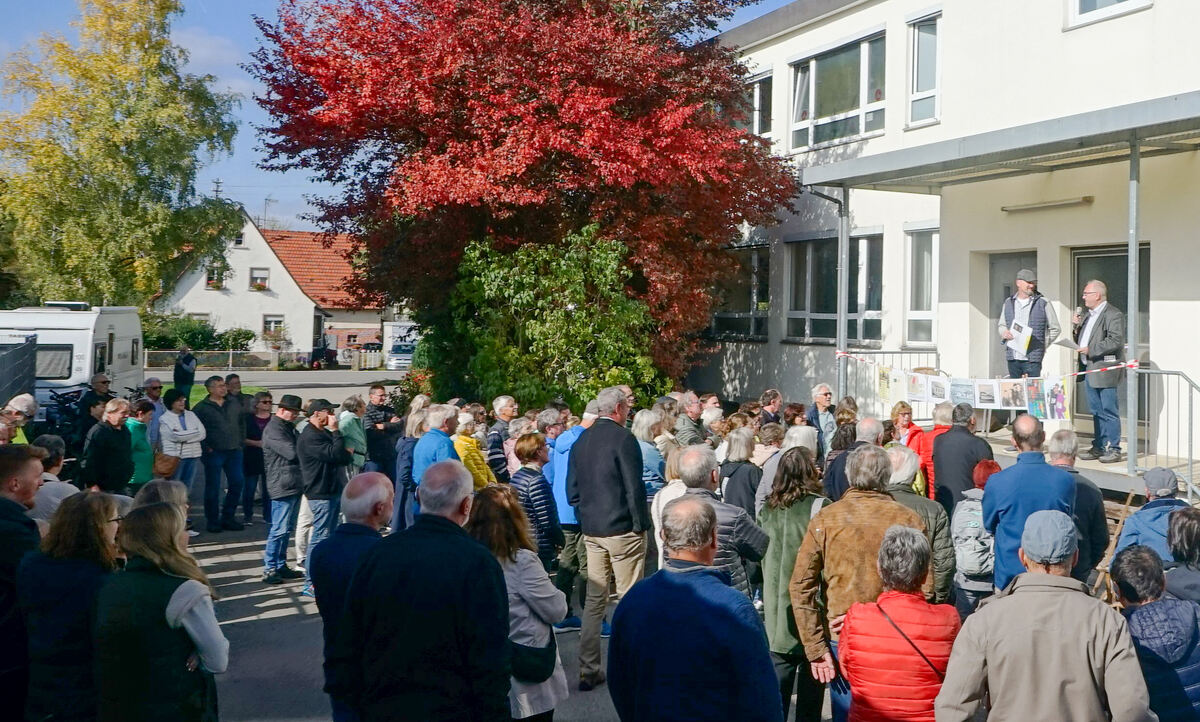 Matthias Schlegel (links stehend auf der Empore) und Berthold Rath führten über hundert Interessierte in die Belsener Wirtschaftsgeschichte. FOTO: STRAUB