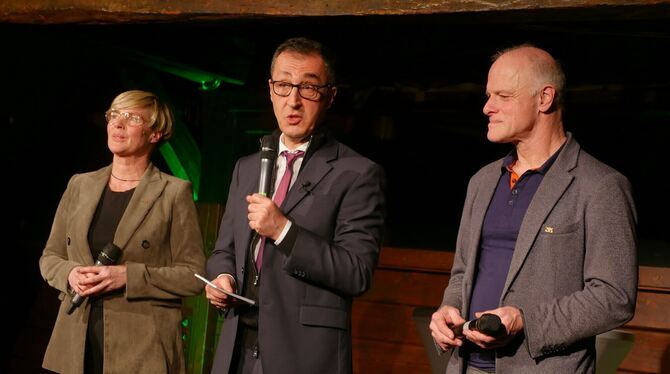Cindy Holmberg konnte als Gastgeberin den Grünen-Spitzenkandidaten Cem Özdemir am Freitagabend in der Metzinger Festkelter begrüßen. Von dem mutmaßlichen Brandanschlag ließen sich die Grünen-Politiker nicht beirren.