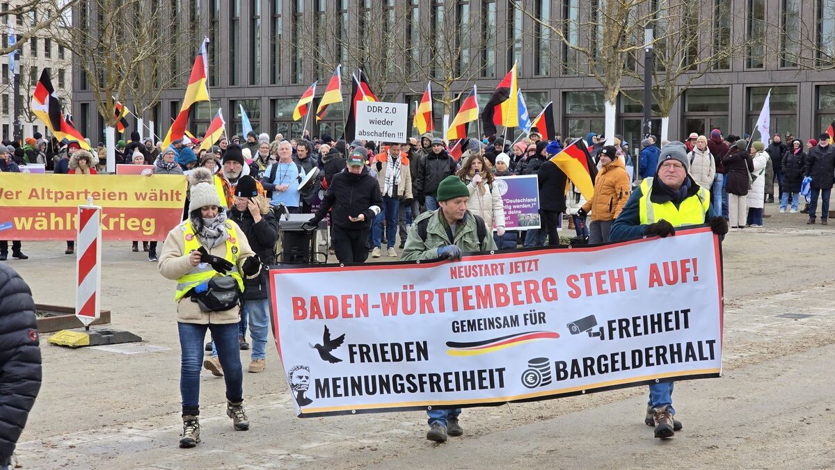 Zuvor hatte Mitorganisatorin Petra Nagel vor der Stadthalle das Mikrofon ergriffen und für einen »friedlichen, aber lautstarken« Ablauf des Demonstrationszugs geworben. Sie verteilte Deutschlandflaggen, die sich zu Fahnen mit Friedenstauben und selbst gebastelten Schildern gesellten, etwa mit der Aufschrift »Frieden schaffen ohne Waffen«. Auf einem Banner hieß es: »Wer Altparteien wählt, wählt Krieg«, ein Slogan, der auch im Umfeld der AfD verwendet wird, um die Außenpolitik der etablierten Parteien zu kritisieren.