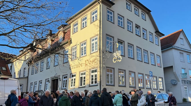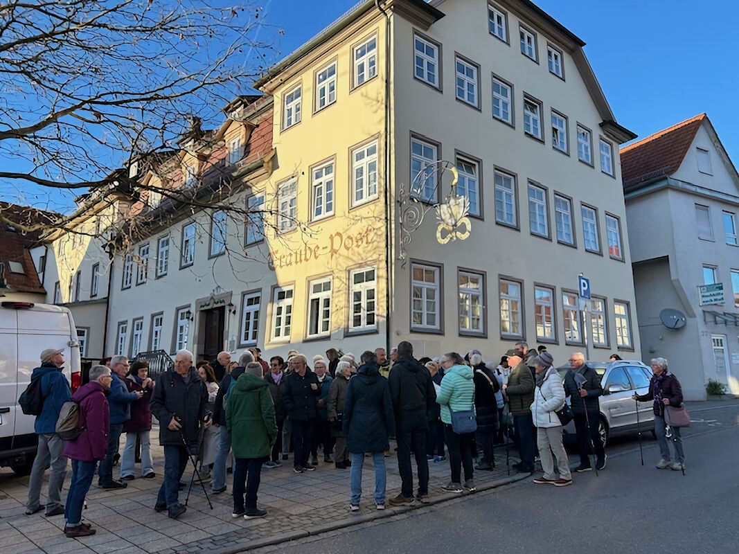 Immer noch gewaltig erscheint das ehemalige Gasthaus Traube-Post, an dessen beste Zeiten sich viele aus der Gruppe erinnerten.