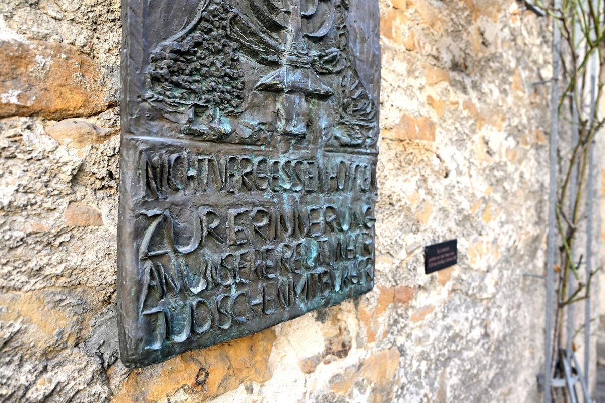 Diese Gedenktafel im Heimatmuseumsgarten erinnert an die in Vernichtungslagern ermordeten jüdischen Mitbürgerinnen und Mitbürger aus Reutlingen. Nach der Gedenkstunde an die Pogromnacht vor 87 Jahren ziehen die Teilnehmer auch am 9. November 2025 wieder mit Kerzen dorthin.