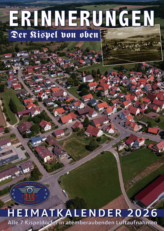 ST. JOHANN. Alle sieben Kispeldörfer in atemberaubenden Aufnahmen sind im Heimatkalender 2026 der Oldtimerfreunde St. Johann festgehalten. Und das im Vergleich: Fotos aus den 1930er-Jahren mit aktuellen Bildern aus der Vogelperspektive. »Besonderheit bei diesem Kalender mit den zwölf Monaten sind die zwei Seiten mehr«, erklärt Ingo Droemer. Um alle sieben Gemeinden unterzubringen, wurden für zwei November und Dezember halbiert. Heißt: Die erste Hälfte der beiden letzten Monate im Kalender sind für Upfingen und Sirchingen mit den alten Bildern versehen, die neuesten von diesem Jahr sind jeweils auf der zweiten Monatshälfte abgebildet.