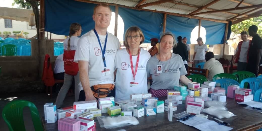 In Uganda im Einsatz: Denise Weihing (rechts) mit zwei Kollegen bei der Medikamentenausgabe.