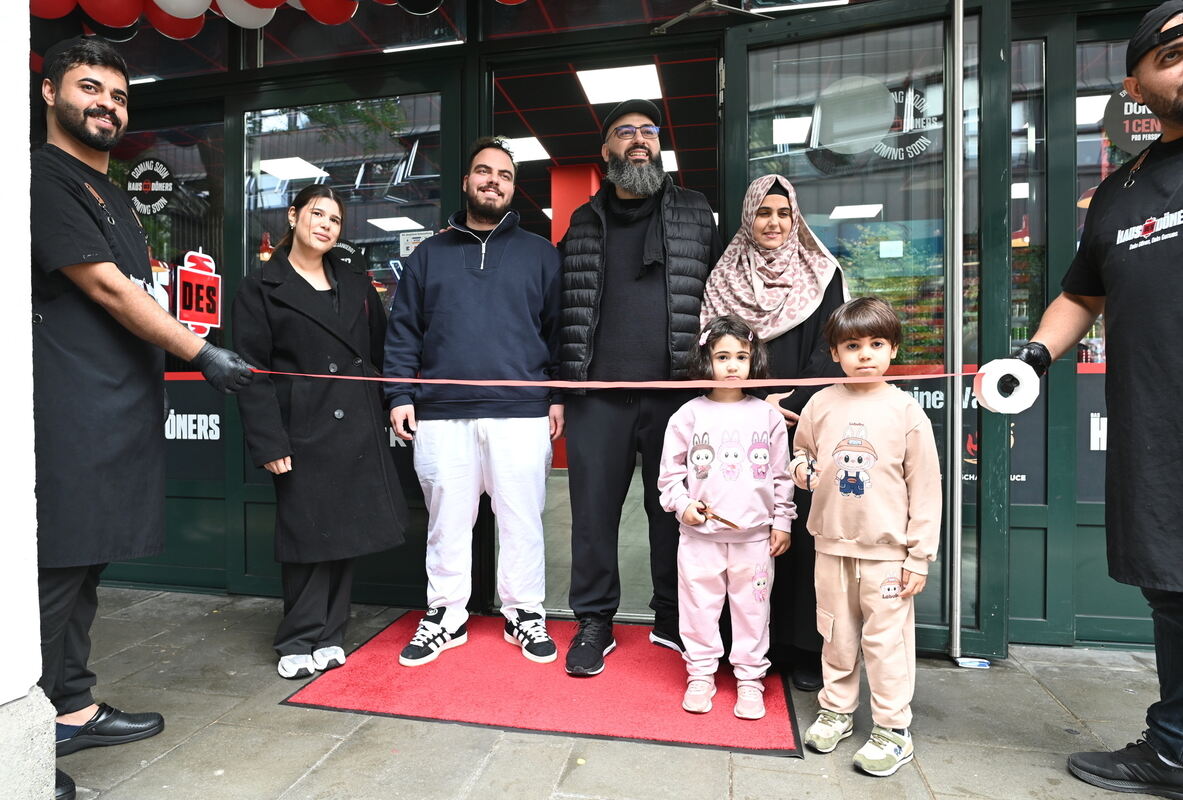 »Wir hatten noch nie so eine Schlange von Anfang an«, freut sich Mustafa Simsek, der die Filiale der Kette »Das Haus des Döners« leitet. Der Ludwigsburger Gastronom betreibt ähnliche Niederlassungen auch in Esslingen und Göppingen. Zur Eröffnung lässt es Simsek an nichts fehlen. »Wir haben Fleisch und Brot für 1.500 Döner. Erfahrungsgemäß reicht das bis zum Ende unserer Öffnungszeit um 24 Uhr«, meint er mit zufriedenem Gesicht. Motto des Dienstags für ihn und seine drei Mitarbeiter hinter der Theke: »Kommt, und testet unseren Döner«. Zur Lenkung des Besucheransturms habe er einen Sicherheitsdienst mit zwölf Menschen bestellt, »da habe ich einen Kleinwagenpreis dafür bezahlt«.