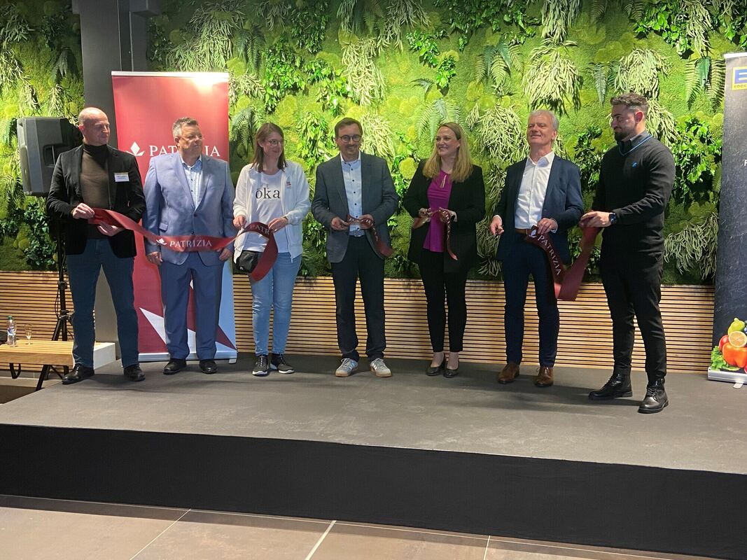 Jetzt ist das alte Kriegbaum-Areal wieder offiziell eröffnet: Bürgermeister Steffen Heß und Edeka-Möck-Leiterin Verena Hertsch (vierter und dritte von rechts) schneiden das symbolische Band durch.