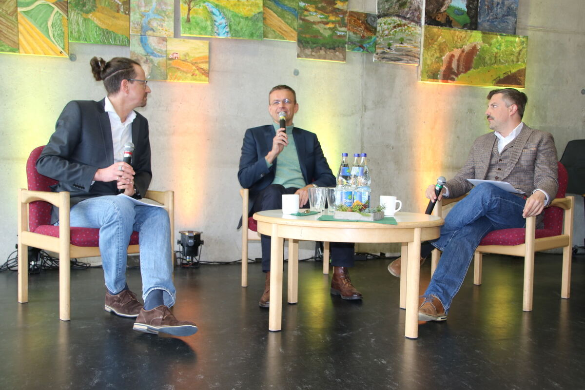 Der Ex-GEG'ler Jens Maschmann (Mitte) ist inzwischen Leitender Ärztlicher Direktor und Vorstandsvorsitzender des Uniklinikums Tübingen. Bei einer Matinee stand er den Lehrern Matthias Eicks (links) und Michael Jaesrich Rede und Anwort.