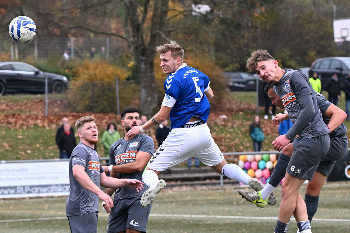 Der Führungsspieler des VfL Pfullingen: Kapitän und Innenverteidiger Sven Packert (blaues Trikot).