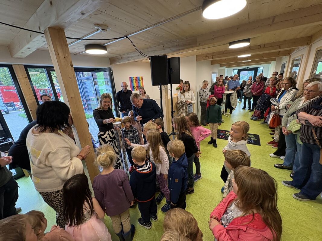 AUINGEN. Für Einrichtungsleiterin Manuela Helbing war das Motto des Einweihungsfestes klar: »Wir übergeben die neuen Räume an die Kinder und nehmen das wörtlich: denn alle Ecken und Räume wurden von den Kindern mitgestaltet, schließlich wird Partizipation in unserem Kindergarten großgeschrieben«. So hatten die bisher 56 Kinder über drei Jahre ebenso wie die Erzieherinnen bei der Einrichtung des Anbaus Mitspracherecht.