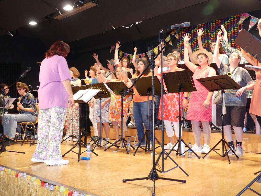 Sommerlaune verbreitete der Eintrachtchor Wannweil auf der Bühne und eine herbstliche Kürbissuppe passte gut zum Wetter. FOTO: SANDER