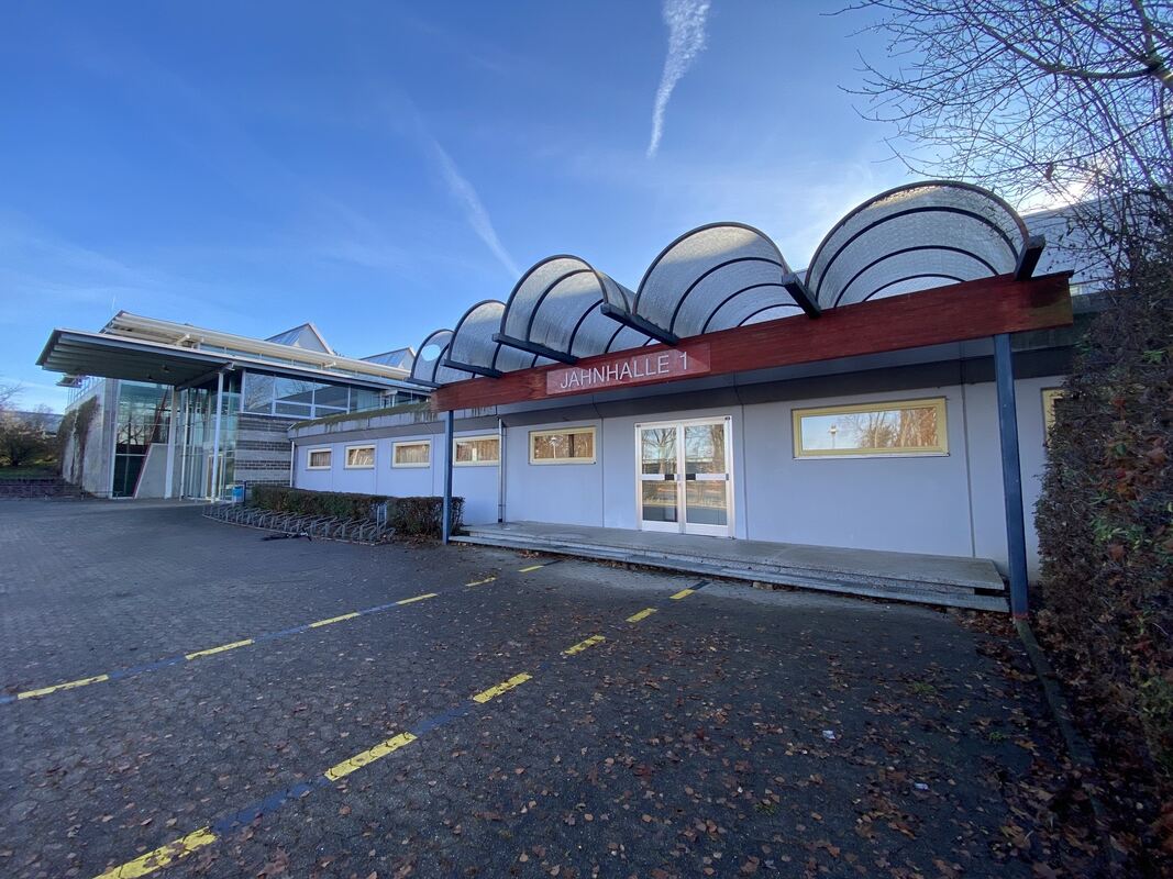 Die Tage der Jahnhalle 1 (rechts) sind gezählt. Deshalb will Mössingen hinter der Jahnhalle 2 (links) eine neue Jahnhalle 3 bauen.