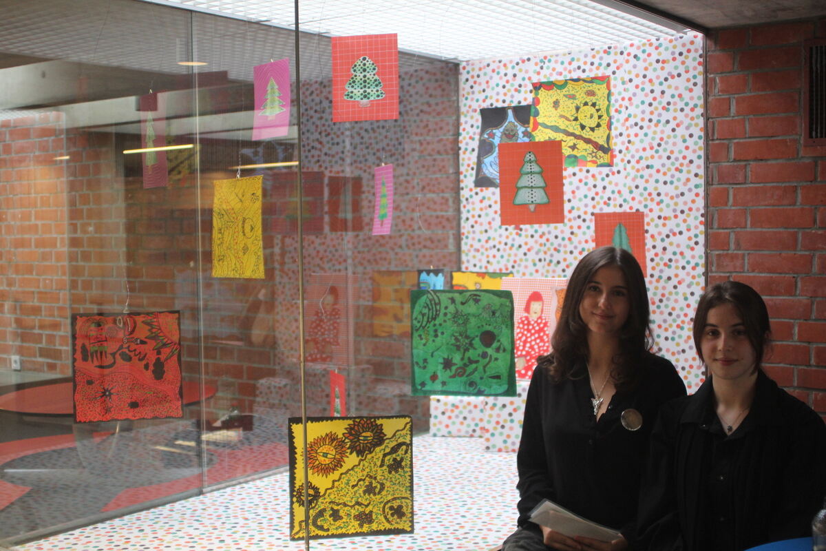 Elif Yonat bekam eine zeitgenössische Künstlerin zugeteilt: Die mittlerweile 97-Jahre alte Japanerin Yayoi Kusama, deren Werke stets viele farbige Punkte enthalten. Die von einer Klasse gemalten Bilder hingen an Draht in der zugeordneten Vitrine. »Das ist hier oben wohl die meist angeschaute Vitrine«, urteilte Elif Yonat, die als Japan-Fan mit dieser Künstlerin eine Wunsch erfüllt bekam. Wenngleich: »Ich mag die Moderne ebenso wie Höhlenmalerei. Da fasziniert mich, wie die Menschen früher Farbe gewonnen haben.«