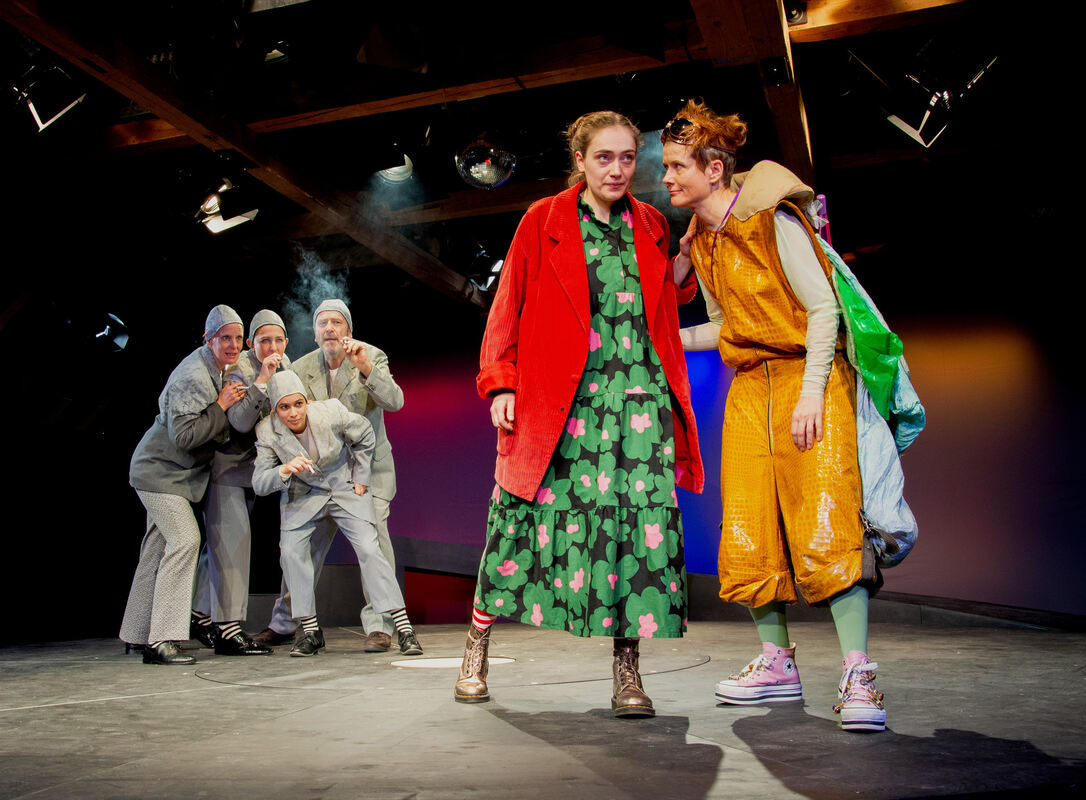 Die Grauen lauern. Im Vordergrund: Hannah Im Hof als Momo und Linda Schlepps als Kassiopeia.