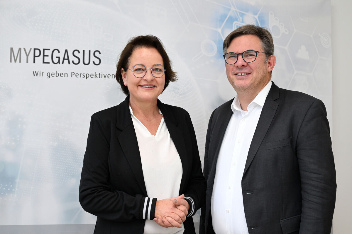Projektleiterin Michaela Uhrig und Geschäftsführer Martin Rosemann von der Reutlinger Transfergesellschaft Mypegasus.