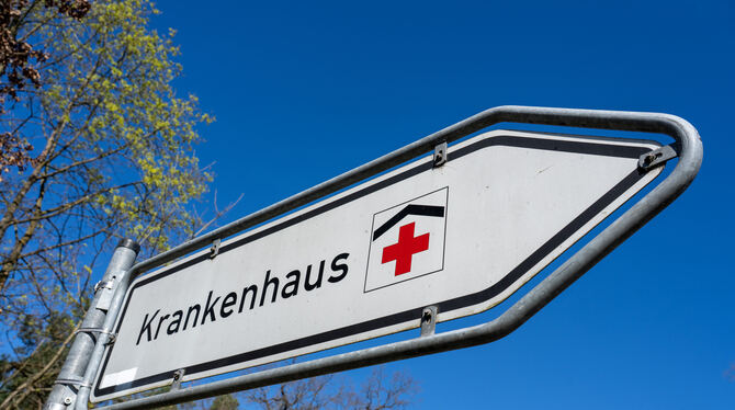 Ein Schild weist den Weg zu einem Krankenhaus.