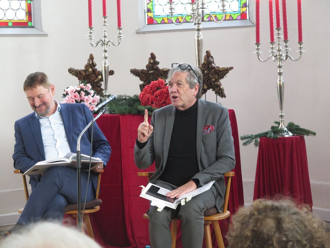 Autor Peter Prange (rechts, mit Verleger Jürgen Stollberg) bei seiner Lesung in Tübingen aus dem Buch »Alle Erinnerung ist Gegenwart«.