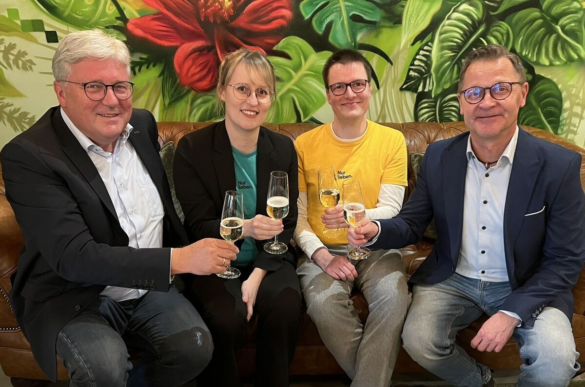 Die Gütegemeinschaft Buskomfort (gbk) kam am Montag mit rund 40 Busunternehmern in Reutlingen zusammen, um sich über die Stadt als Reiseziel zu informieren: (von links) gbk-Vorsitzender Hermann Meyering, Reutlinger Tourismusleiterin Selina Schröder und Mitarbeiter Markus Zeidler sowie gbk-Geschäftsführer Martin Becker.
