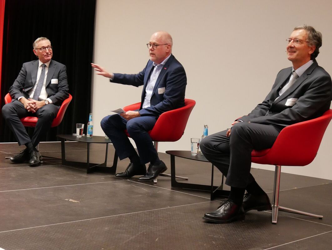 Sie führten bei der Veranstaltung »Wirtschaft trifft Kommune« eine angeregte Diskussion darüber, wie die Probleme der Zeit gelöst werden könnten (von links): Eike Möller, Moderator Peter Haas und Jens-Oliver Niklasch.