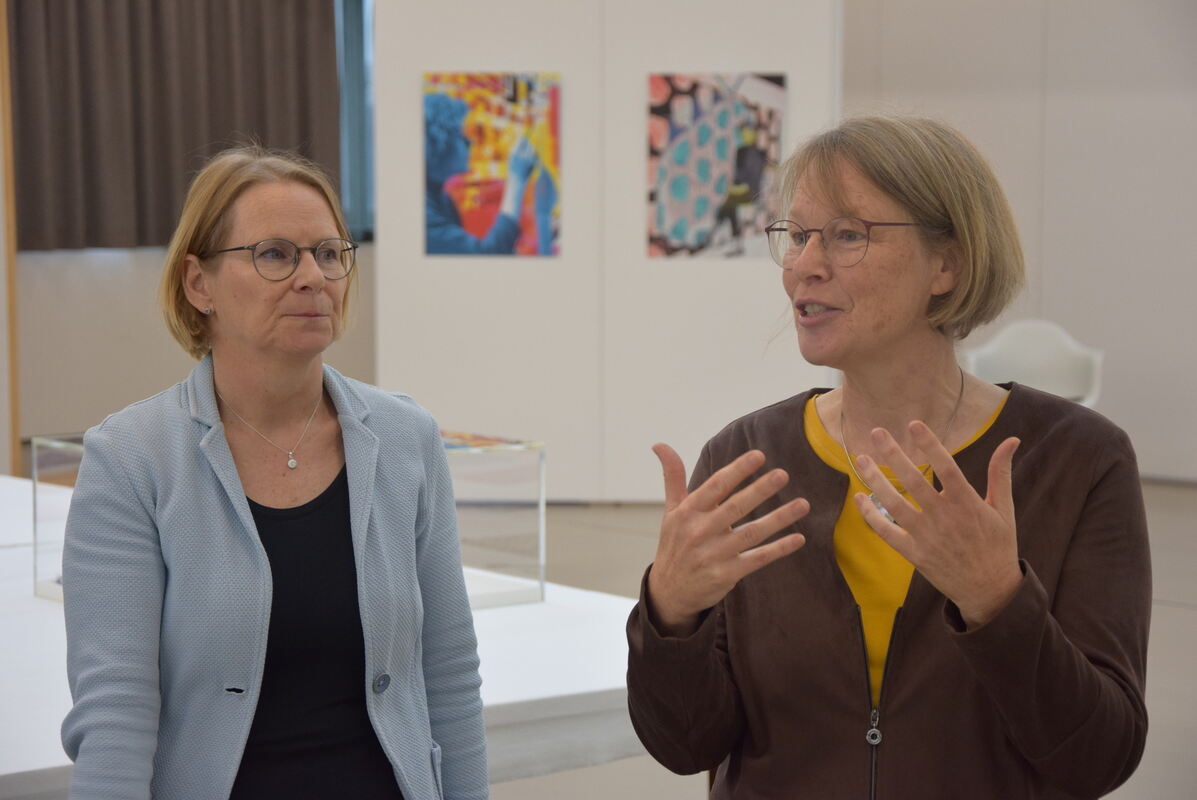 Museumsleiterin Dr. Franziska Blum (links) und Gedok-Vertreterin Dr. Kathrin Fastnacht präsentierten die neue Ausstellung in der Pausa.