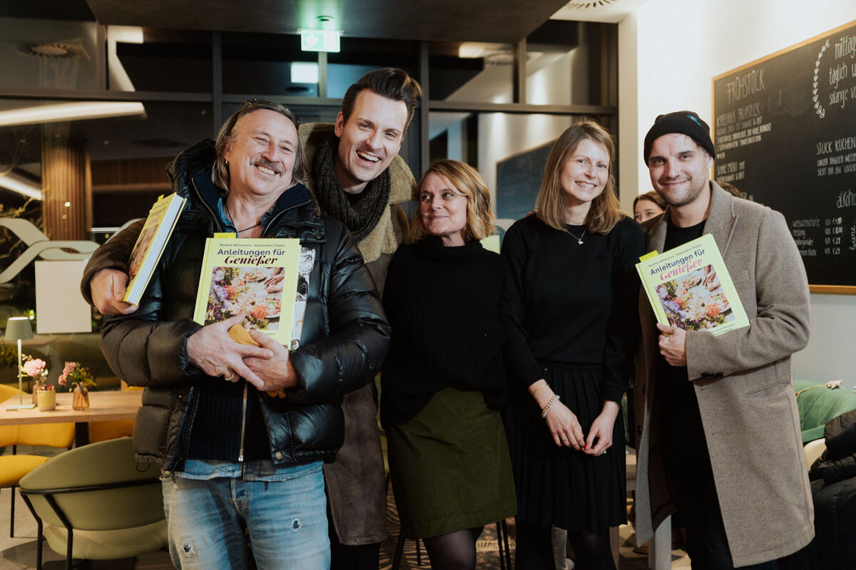 Bei der Vorstellung des Buchs im Tübinger K'ffeehaus mit Dieter Thomas Kuhn (links), Sam Budja, Alexandra Pieper, Nadine Wilmanns und Sven Fischer.