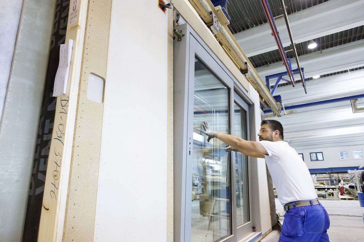 Fertighaus-Produktion bei Schwörer in Hohenstein-Oberstetten.