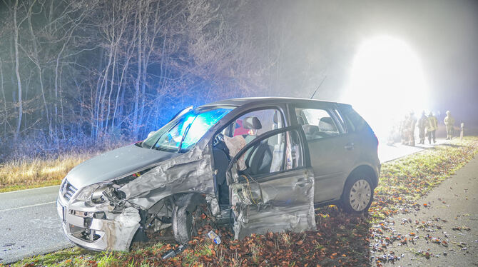 LICHTENSTEIN/ST. JOHANN. Zahlreiche Einsatzkräfte von Feuerwehr, Rettungsdienst und Polizei sind am Donnerstagabend zu einem schweren Verkehrsunfall zwischen Lichtenstein-Holzelfingen und St. Johann-Ohnastetten gerufen worden. Kurz vor 21 Uhr hatten Zeugen den Zusammenstoß zweier Autos auf der K 6711 gemeldet. Nach bisherigen Erkenntnissen war ein 40 Jahre alter Mann mit seinem VW Polo kurz nach der Abzweigung zum Stahlecker-Hof aus noch unbekannter Ursache auf die Gegenfahrbahn geraten und dort mit einem entgegenkommenden Mercedes eines 60-Jährigen seitlich zusammengeprallt.