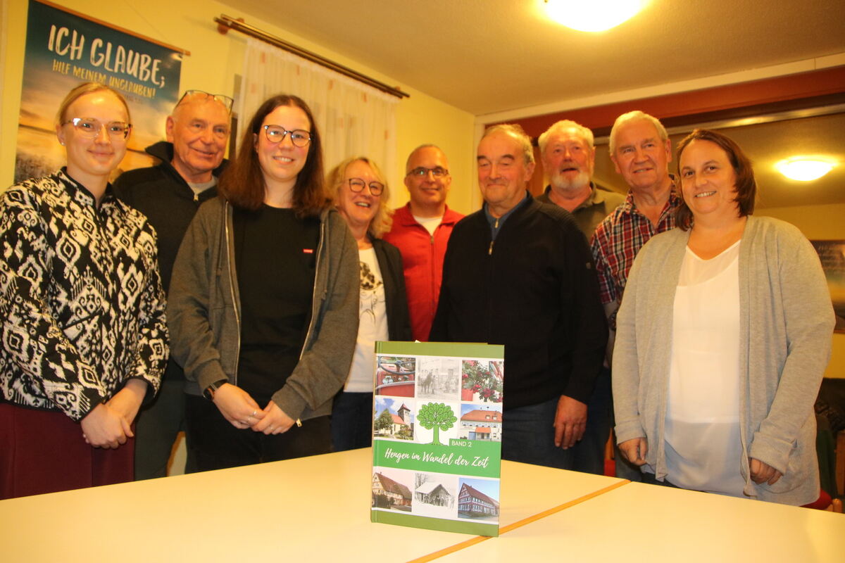 Die Mitglieder des Arbeitskreises sind stolz auf den zweiten Band der Dorfchronik: Das Probeexemplar ist korrigiert, nun geht das Werk in den Druck.