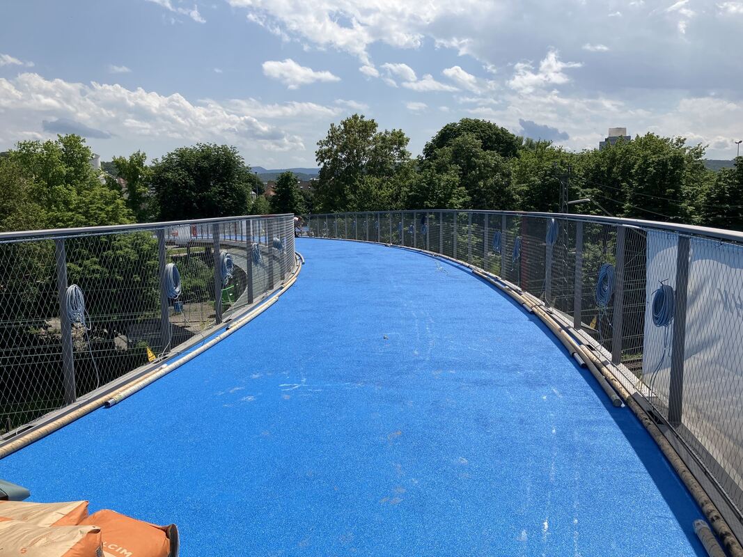 Die Radbrücke Mitte (Durham) war die erste, die im Juli 2021 fertiggestellt wurde. Sie verbindet auf 35 Metern Länge die Wöhrdstraße mit der Bismarckstraße und führt über die Steinlach. Sie ist die erste Radbrücke in Tübingen mit Heizung. Im Juli 2023 folgte die Radbrücke Ost (Perugia) neben dem Fußgängerüberweg am Neckarstauwehr. Sie ist 85 Meter lang und ebenfalls beheizt.