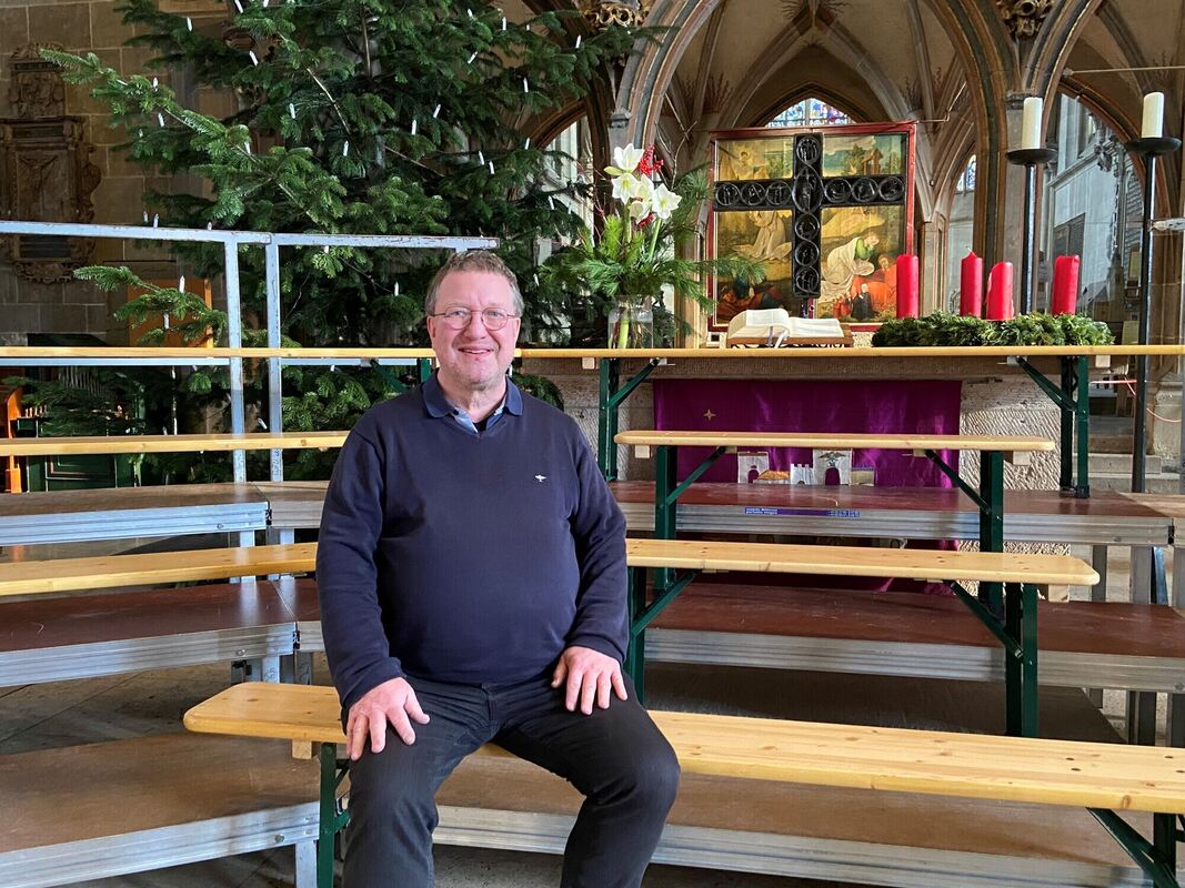 Ingo Bredenbach ist der vierte Kantor, der in der Tübinger Stiftskirche wirkt, seitdem die Motette im Jahr 1945 eingeführt wurde. Für das nächste Konzert ist schon alles aufgebaut.