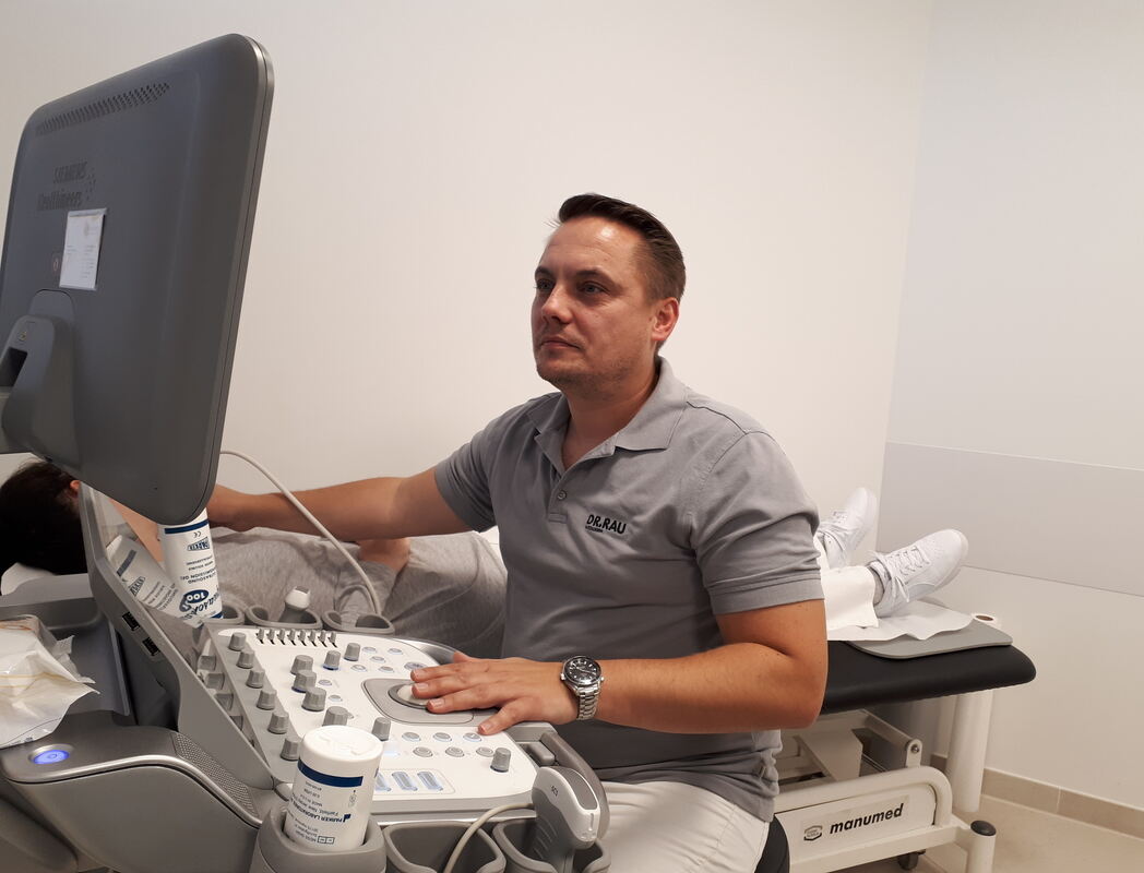 Dr. med. Alexander Rau betreibt eine Hausarzt-Praxis in Eningen. Dort bietet er Patienten auch Ultraschall-Untersuchungen an.