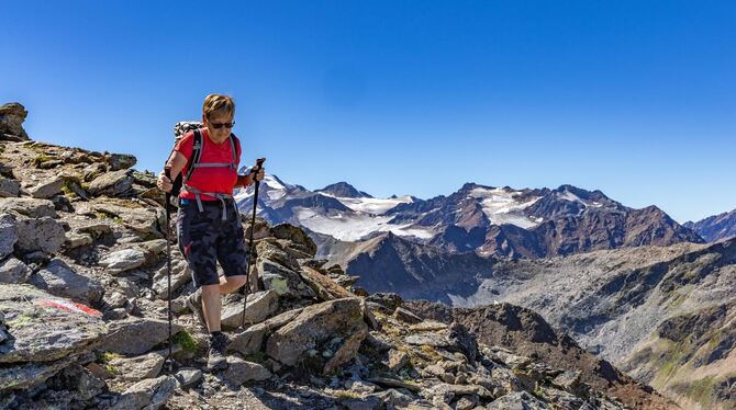 Wer endlose Fernblicke und echte alpine Erlebnisse sucht, findet in den Ötztaler Alpen sein Traumziel. Zwischen mächtigen Dreitausendern, grünen Almen und klaren Bergseen macht diese Landschaft jeden Wanderschritt zum Erlebnis. Vier Touren stehen auf dem Programm, mit kleinen Unterschieden. So kommen Genusswanderer und sportlich Ambitionierte gleichermaßen auf ihre Kosten. Ausgehend vom Stützpunkthotel in Sölden geht es von der Timmelsjoch Passstraße bei Obergurgel abwärts in das Gurgler Tal, mit dem Erlebnis der ungezähmten Gurgler Ache. Vom Gipfel des Schwarzhorns geht der Blick einer weiteren Wanderung ins Gletschergebiet des Tiefenbach Ferners und zur Wildspitze. Unterwegs im Rotmoostal zeigt sich eindrucksvoll der Rückzug der Gletscher als Folge des Klimawandels. Mit der Rundwanderung zum höchsten Wasserfall Tirols, dem Stuibenfall, endet die Exkursion in die Ötztaler Alpen.